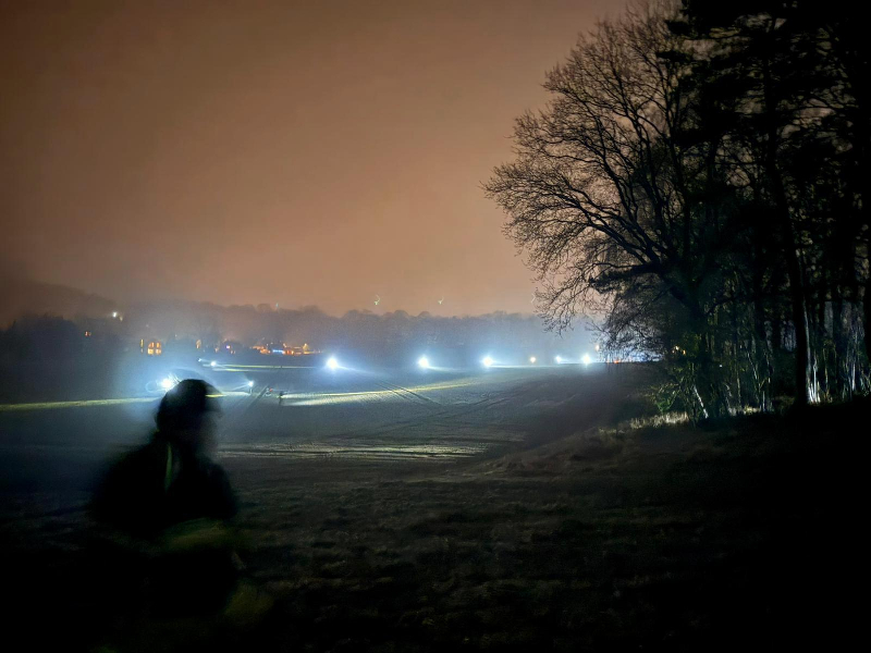 Parallel zur Drohnensuche wurden mit den Einsatzkräften Suchtrupps gebildet, die dann ein Gebiet östlich der Grundschule, in dem die Person vermutet wurde, absuchten. Hierbei kamen auch Nachtsichtgeräte und Wärmebildkameras zu Einsatz, leider vorerst ohne Erfolg.