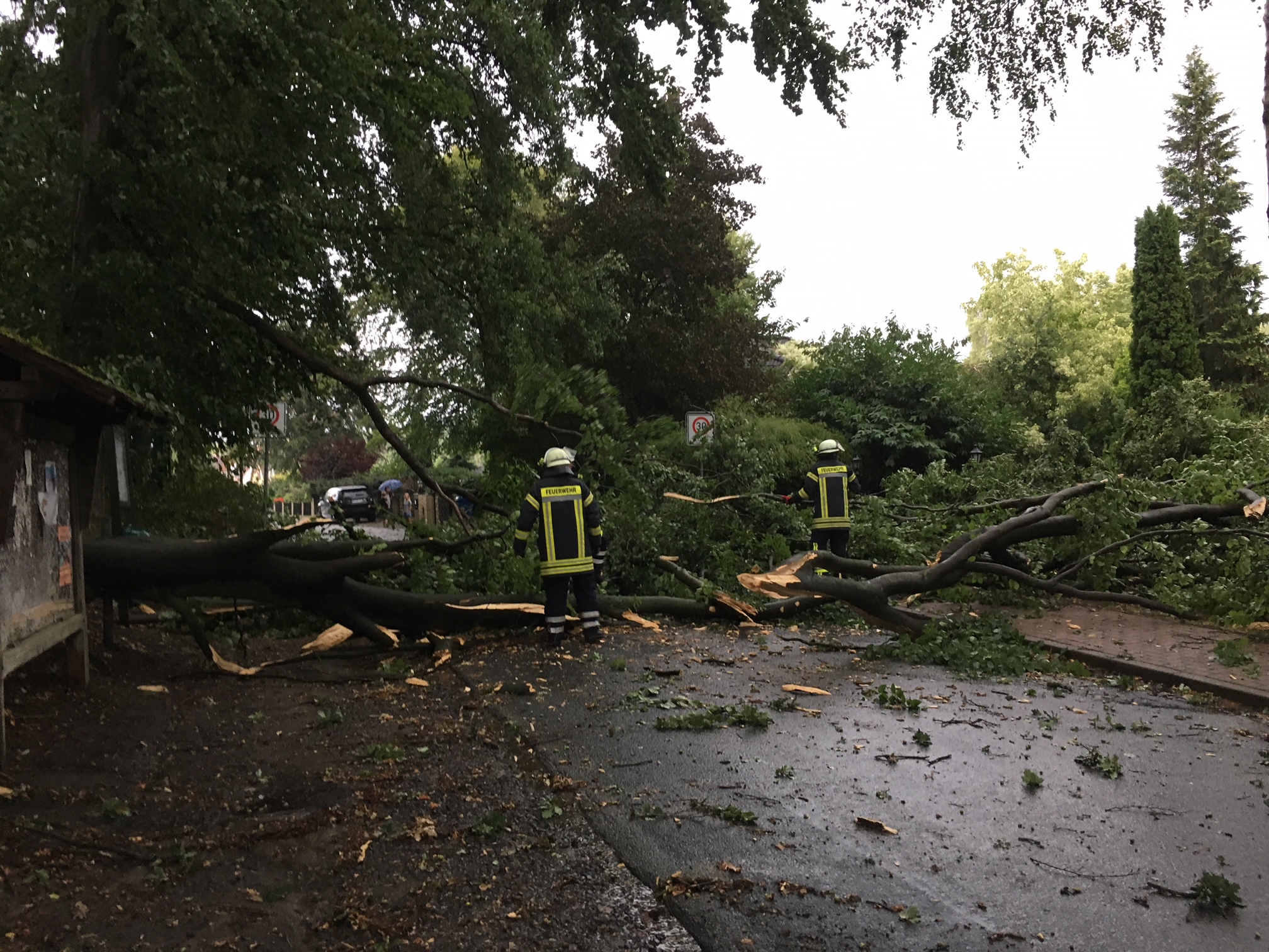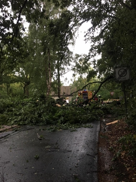 Im Stadtweg war ein Baum auf die Strasse und ein Grundstück gefallen. Dadurch war der Ortsteil regelrecht abgeschnitten. Der Baum wurde dann zerlegt, sodass die Zufahrt nach Neu-Leversen wieder möglich war.