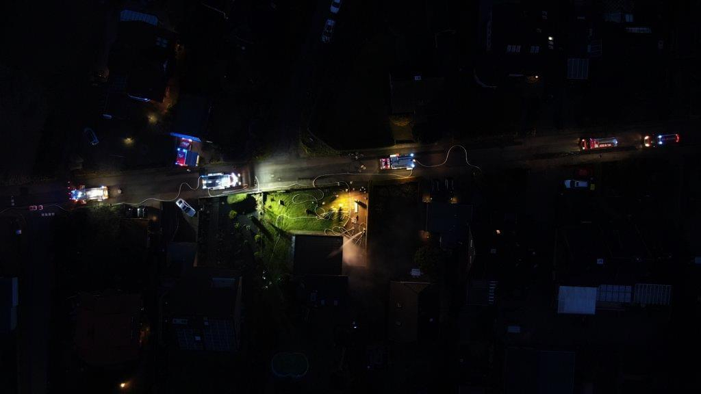 Die angenommene Lage sah vor, dass sich insgesamt 3 Personen in einem Gebäude (Abrisshaus) befanden, welches nach einer vorangegangenen Explosion in Brand geraten war. Entsprechend wurde durch die Einsatzleitung eine Brandbekämpfung, sowie ein Innenangriff zur Menschenrettung eingeleitet. Beim Vorrücken eines AGT-Trupps durch die Haustür kam es zu einer Durchzündung der Rauchgase (siehe Fotostrecke). Es wurden dann rasch 2 Personen gerettet. Im weiteren Verlauf kam es dann zu einer Durchzündung im gesamten Gebäude (Fotostrecke) nach der nun auch ein Atemschutztrupp vermisst wurde. Dieser und auch die 3. Person wurden nun im weiteren Verlauf aus dem Obergeschoss gerettet. Nach ca. 2 Stunden konnte Übungsende gegeben werden und im Anschluß rückten alle Kräfte wieder in ihre Stützpunkte ein.