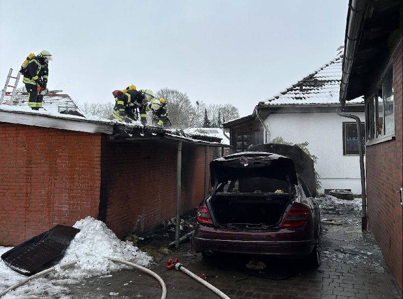 Zu einem brennenden Fahrzeug wurden wir zur Unterstützung der o.g. Wehren nach Nenndorf alarmiert. Dort hatte ein PKW, der zwischen 2 Gebäuden abgestellt war, Feuer gefangen. Da es sich im Bereich der Tankstelle in Nenndorf handelte wurden sofort ausreichend Kräfte alarmiert. Nachdem die ersten Kräfte den PKW-Brand abgearbeitet hatten, wurde noch im Dachbereich des einen Gebäudes nach Glutnestern gesucht und diese abgelöscht. Ebenso wurde die angrenzende Garage und der Verkaufsraum der Tankstelle kontrolliert und auch belüftet. Nach gut 2 Stunden konnten dann alle Kräfte wieder in ihre Stützpunkte einrücken.