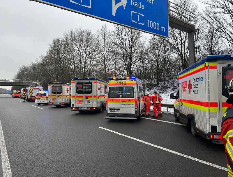 Zu einer Hilfeleistung nach einem Verkehrsunfall wurde die Feuerwehr Leversen-Sieversen am Donnerstagmittag auf die BAB A261 alarmiert. Im Bereich der Autobahnüberführung zwischen Emsen und Nenndorf hatte sich ein Unfall mit mehreren beteiligten Fahrzeugen ereignet. Noch während der Anfahrt erfolgte durch die Leitstelle Harburg eine Stichworterhöhung auf die Lage THY-2, sprich „Eingeklemmte Person mit LKW Beteiligung“. Daraufhin wurde zusätzlich zu den bereits alarmierten Kräften der FF Tötensen auch die FF Rade mit dem Rüstwagen, gemäß AAO alarmiert. Des Weiteren wurde ein Großaufgebot an Rettungswagen und Notärzte zur Einsatzstelle alarmiert. Zwischenzeitliche Meldungen ergaben eine größere Anzahl an Verletzten.